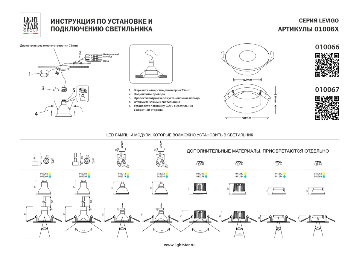 Светильник точечный Levigo 010067 Lightstar круглый купить с доставкой по Москве и России в интернет магазине Уютный-Свет.рф