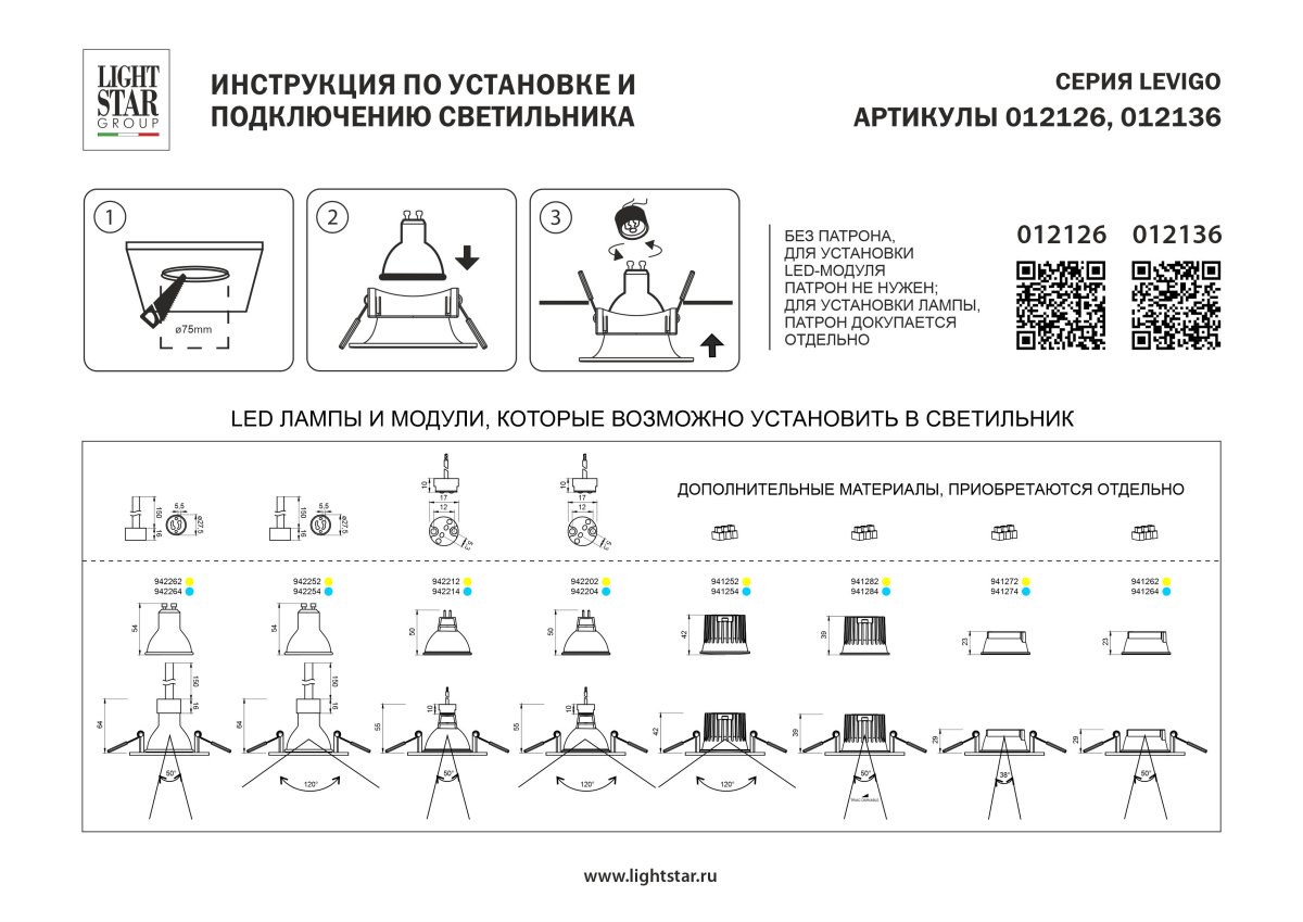 Светильник точечный Levigo 012126 Lightstar круглый купить с доставкой по Москве и России в интернет магазине Уютный-Свет.рф