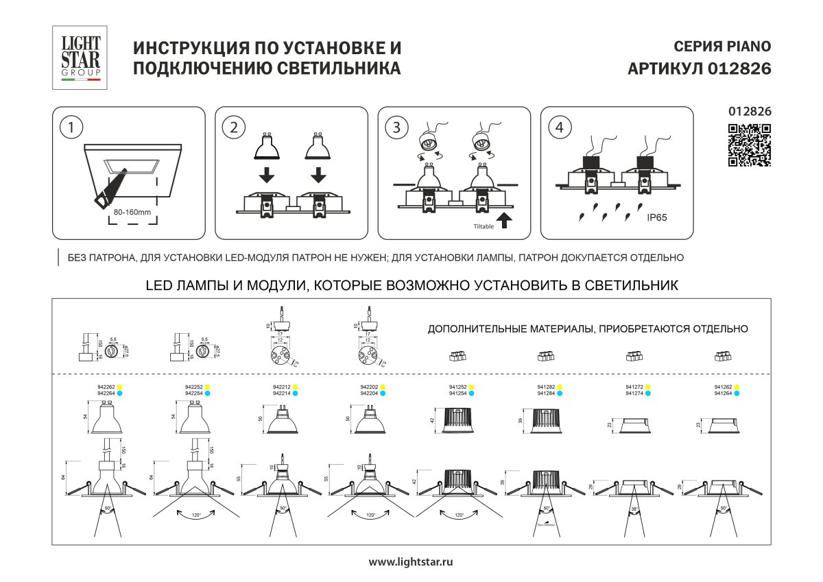 Светильник точечный Piano 012826 Lightstar прямоугольный купить с доставкой по Москве и России в интернет магазине Уютный-Свет.рф