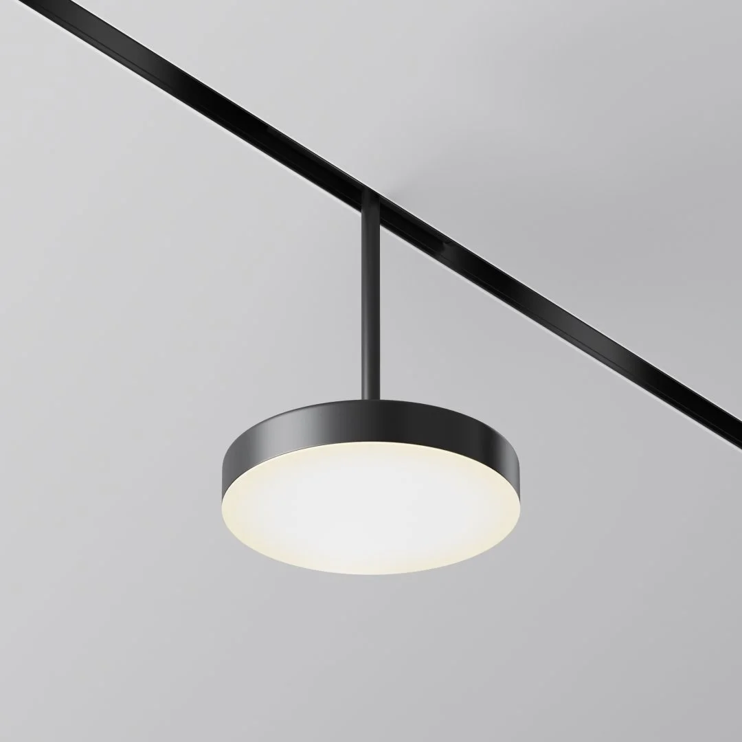 Алюминиевый корпус в черном цвете. Декоративные трековые подвесные светильники и на жестком основании в форме диска создадут широкий угол света и идеальны для общего равномерного освещения. Матовый опаловый рассеиватель выполнен из стекла и исключает слепящий эффект. LED-источник света. Поворотный механизм светильника на жестком основании позволяет менять направление светового потока в двух плоскостях: вокруг своей оси с поворотом на 355° и в горизонтальной плоскости с наклоном на 180°. Цветовая температура 3000K, 4000К, а также умные светильники с регулировкой цветовой температуры от 3000K до 6000K и диммированием по протоколу Bluetooth Mesh.