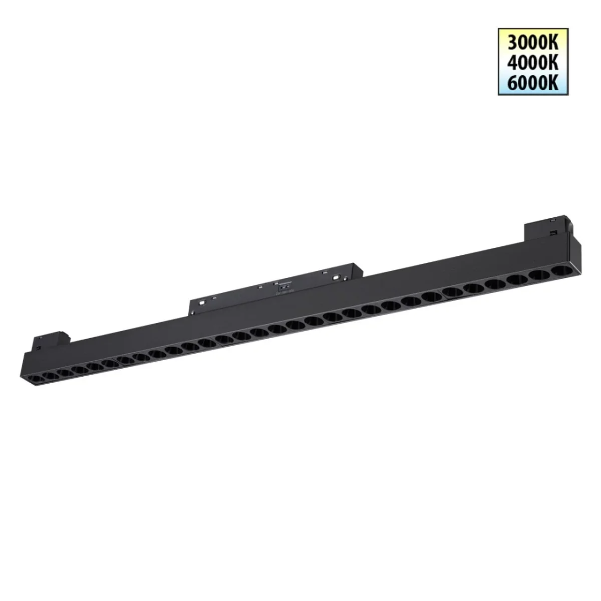 Обновлённая линейка FLUM от NOVOTECH™ представляет собой передовую серию трековых низковольтных линейных светильников направленного света с возможностью переключения трёх режимов цветовой температуры (3000К, 4000К, 6000К). Осветительные приборы оснащены технологичными светодиодами с высокой точностью воспроизведения цветов (CRI >90), гарантирующими безупречное восприятие оттенков освещаемых объектов. Эргономичные модели соответствуют строгим стандартам уровня зрительного комфорта (UGR <19), исключают блики и усталость глаз даже при длительной эксплуатации. Лаконичный дизайн представлен двумя классическими цветами — белым и чёрным, а также удобными размерами — 328, 543 и 876 мм, что обеспечивает гармоничное сочетание с любым современным интерьером и делает светильники идеальным выбором для профессионального качественного освещения всех типов помещений.