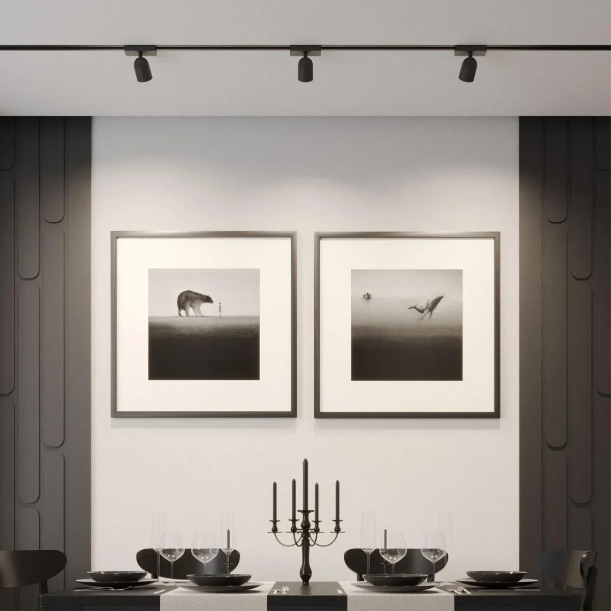 Трековые однофазные двухжильные поворотные светодиодные светильники SOLETTE представлены в двух вариантах цвета корпуса — матово-чёрном и матово-белом, а также в двух цветовых температурах — 3000K и 4000K. Основным их достоинством является инновационный поворотный механизм, позволяющий скрыть внутренние элементы и сохранить эстетичный вид монолитного корпуса. Благодаря ряду значимых преимуществ, таких как узкий угол рассеивания света (32°), архитекторы и дизайнеры всё чаще выбирают светильники SOLETTE для эффективного выделения элементов интерьера, создавая привлекательное и выразительное освещение.