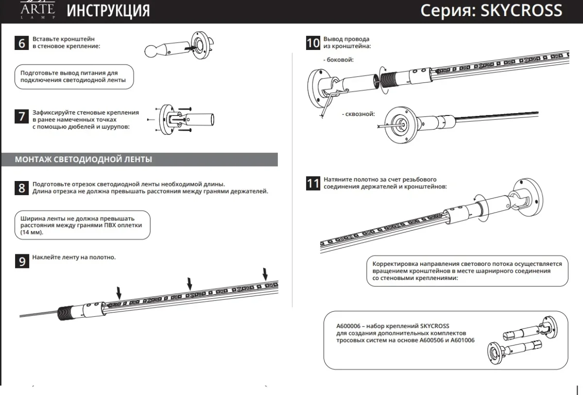 Тросовая система (комплект) LED Skycross A600506-140-mix Arte Lamp купить в интернет магазине Уютный-Свет.рф