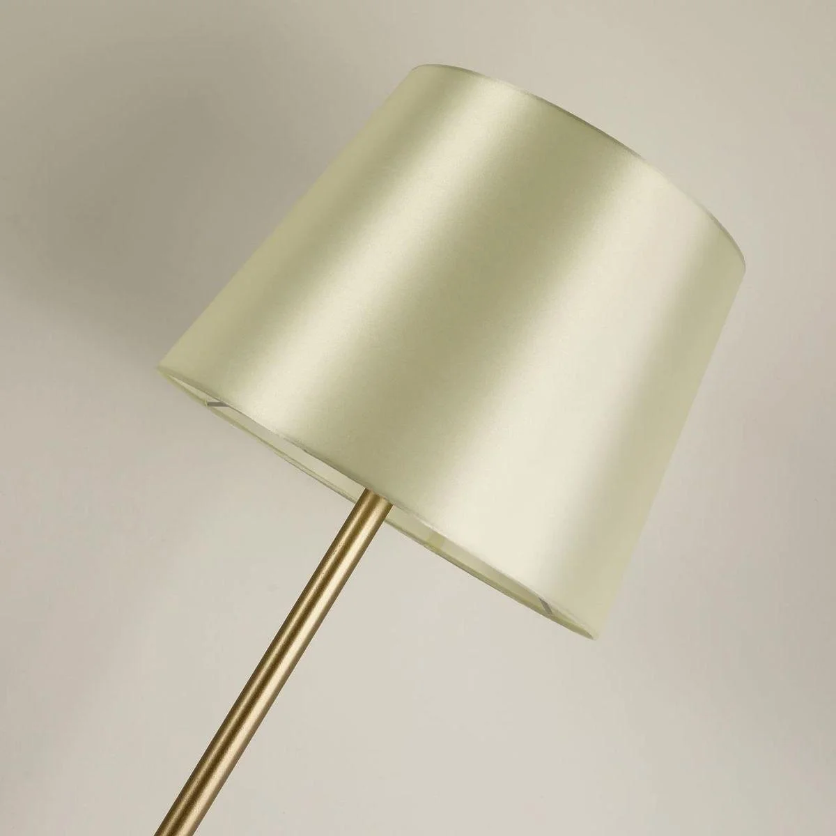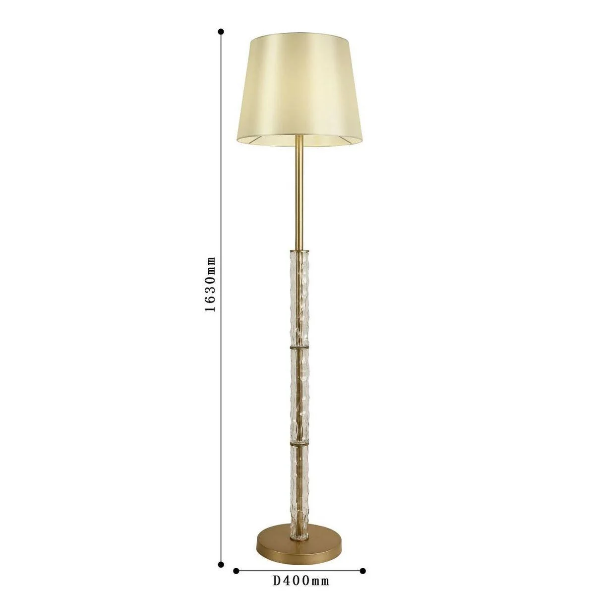 Описание товаракаркас цвета матового золота, плафон из бежевой атласной ткани, декоративные элементы из прозрачного стекла