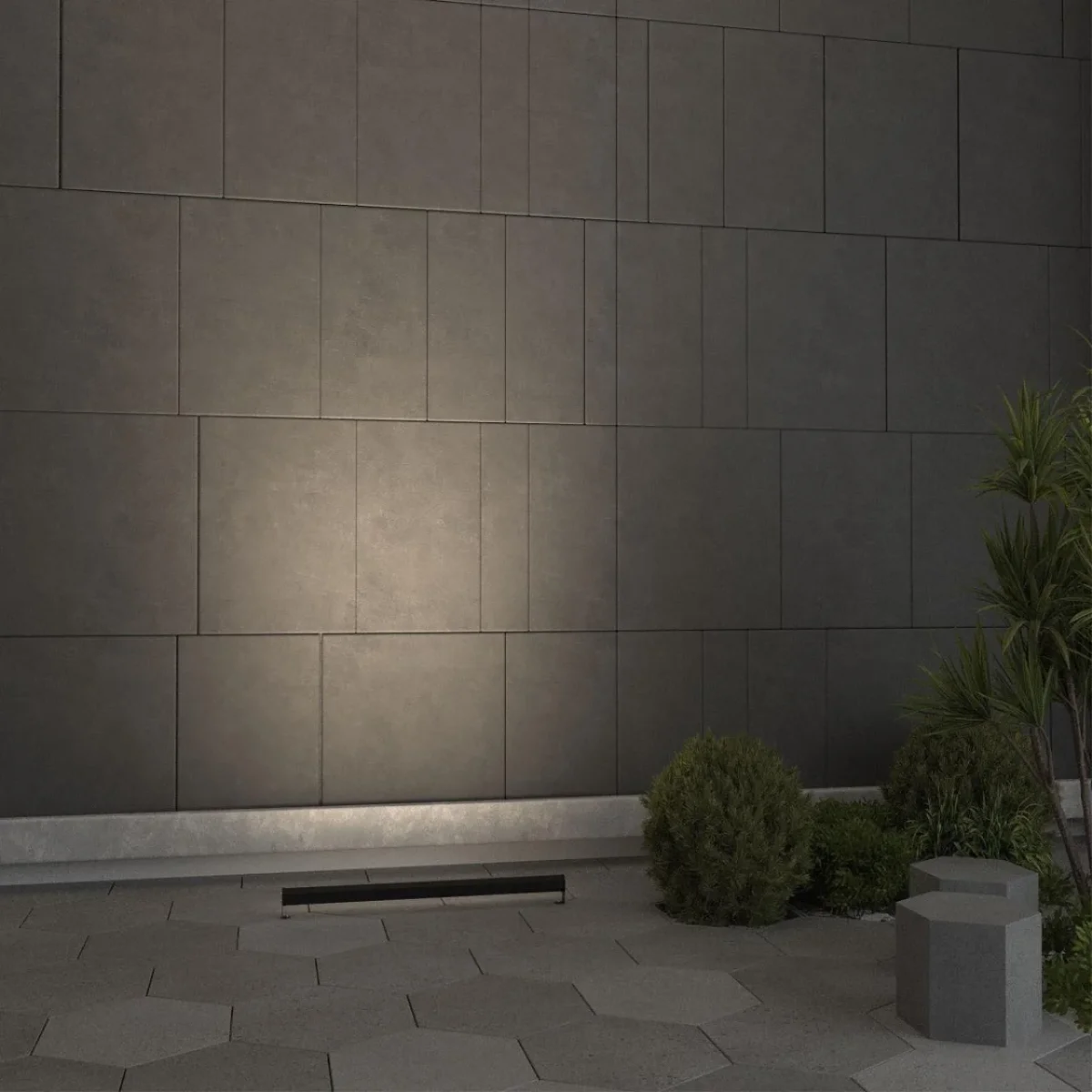 To graze в переводе с английского означает "скользить по поверхности (о луче света), падать под скользящим углом". Этот вид освещения отличается от заливающего света, например, светильника "wall washer". Фасадный поворотный на 180° светильник GRAZE обеспечит скользящий свет для подсветки фактурной стены, забора или любой ниши, фактура которой нуждается в выделении. Может монтироваться на пол или стену. Светильники представлены в двух размерах: 500мм и 1000мм.